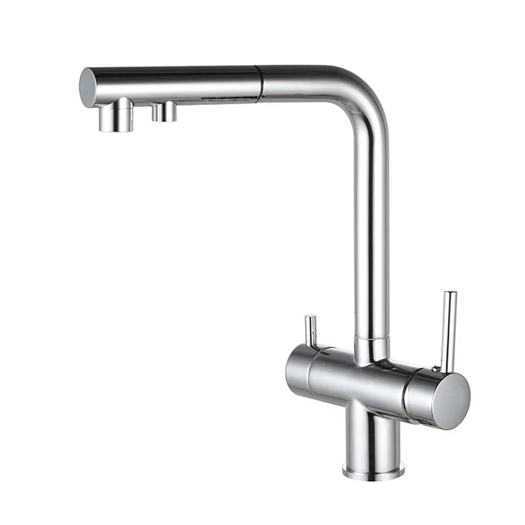 Wholesale 2 Handles 3 in 1 Modern Pull Down Sprayer Sink Faucet Kitchen Tap With Purified Water